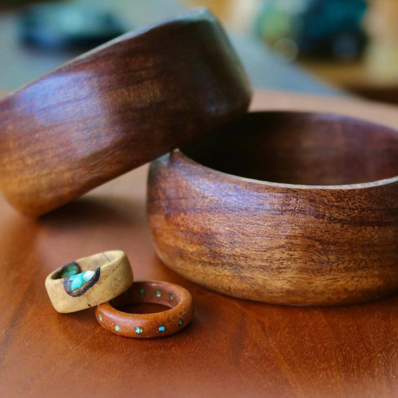 Our wears + wares are designed and made using recycled wood from woodworkers scraps. We help plant trees with every purchase made.