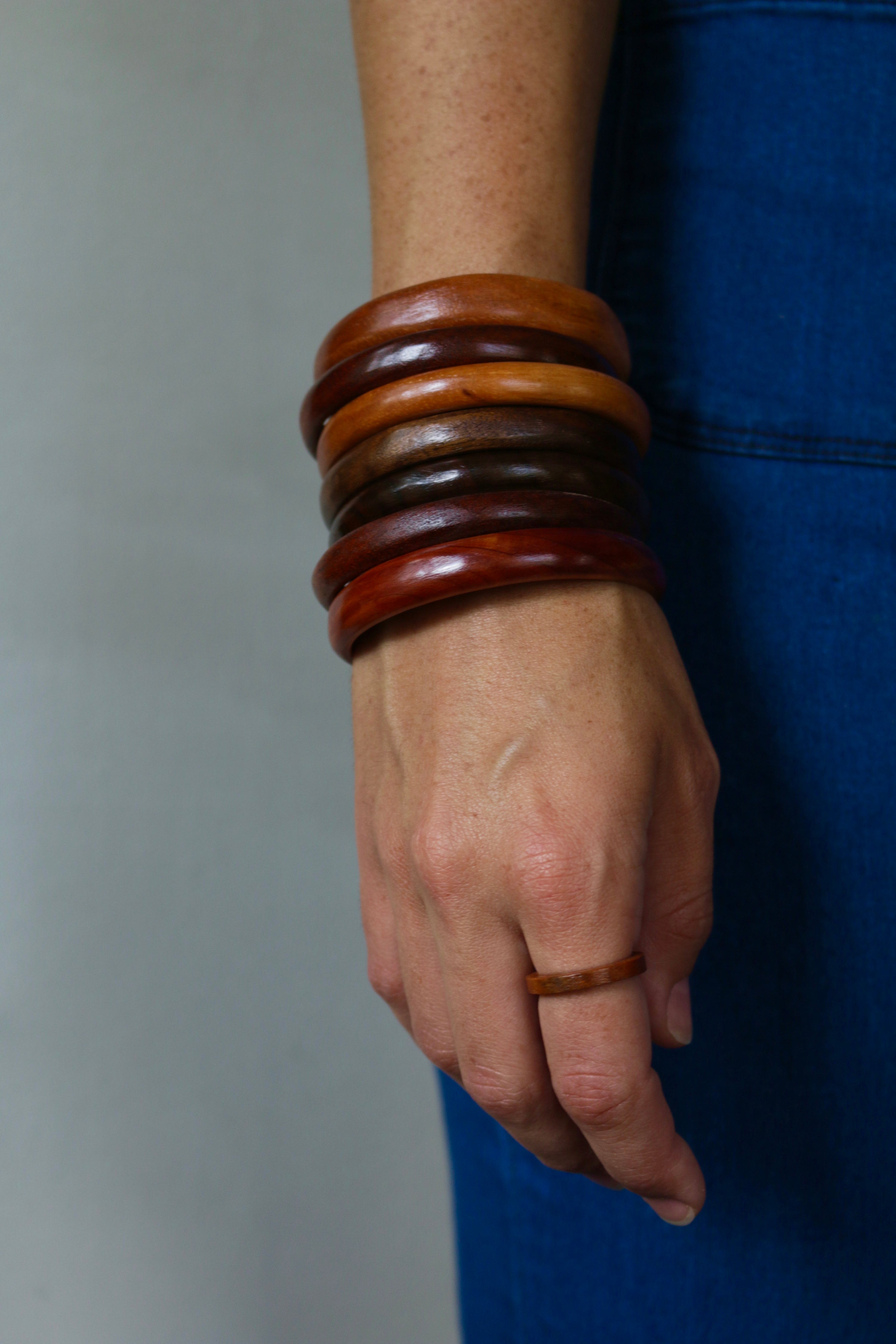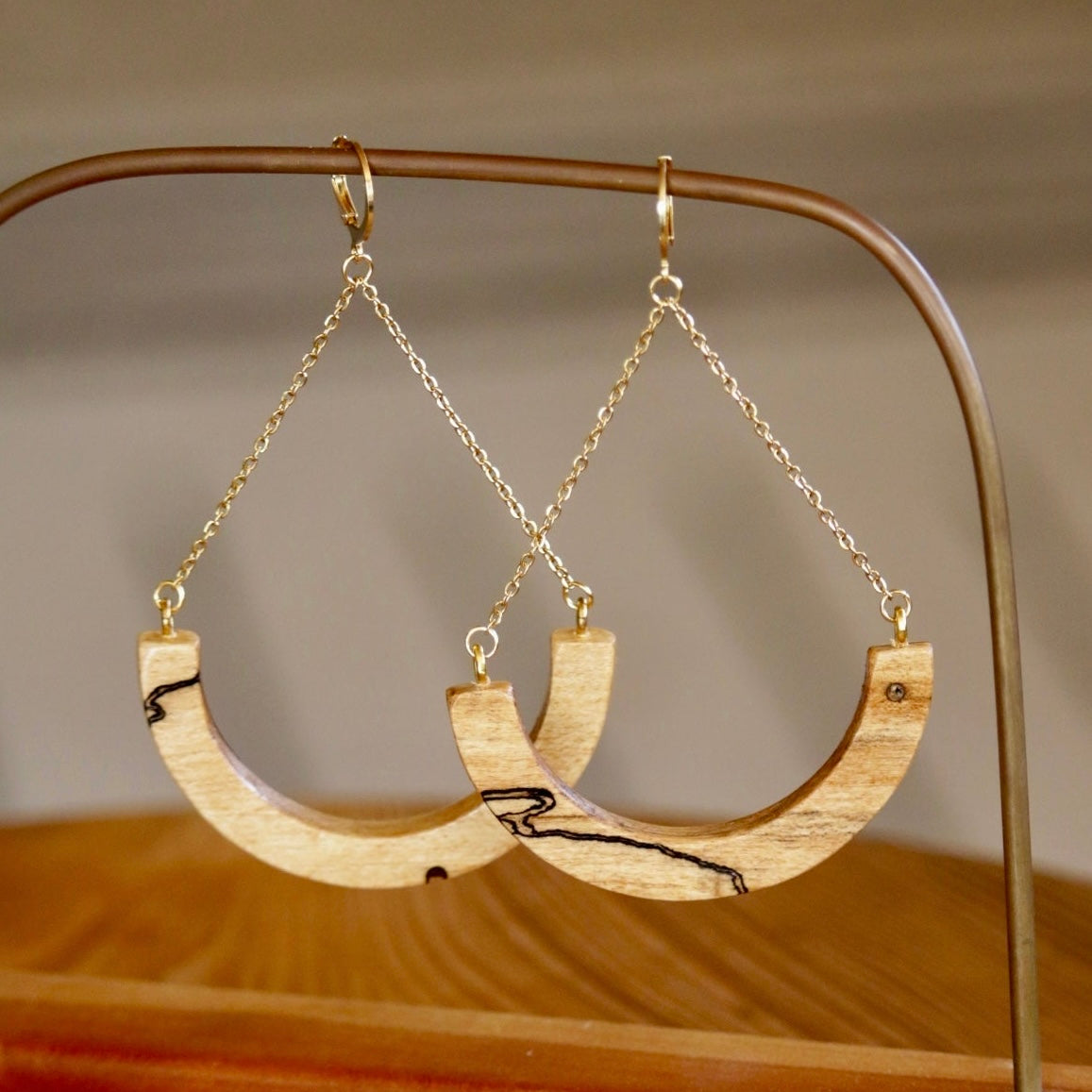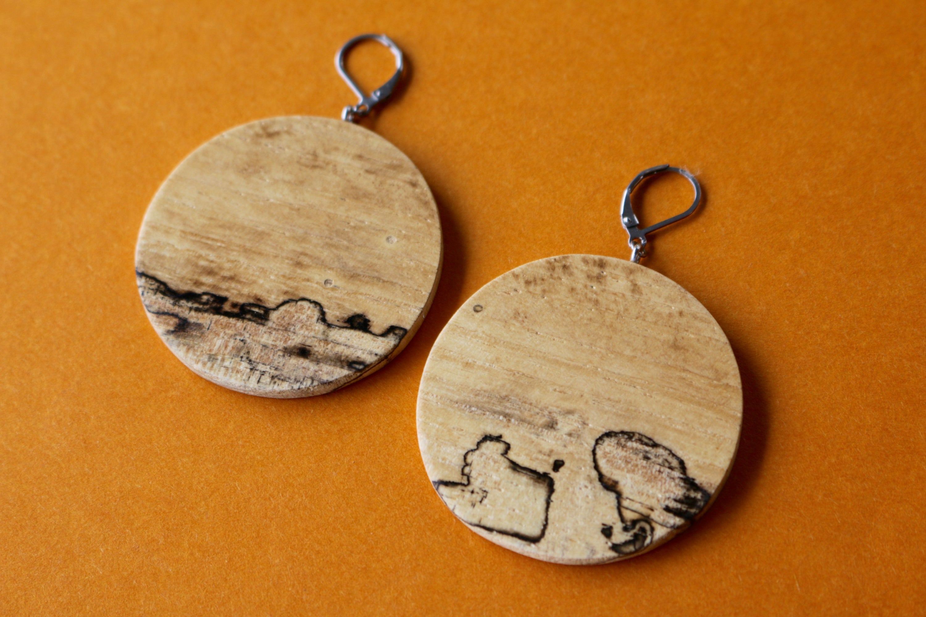 All of the wood used to make our jewelry is recycled from woodworkers scraps. Each piece is hand cut, sanded and finished with organic oils to preserve the woods natural beauty. Each piece tells a story.