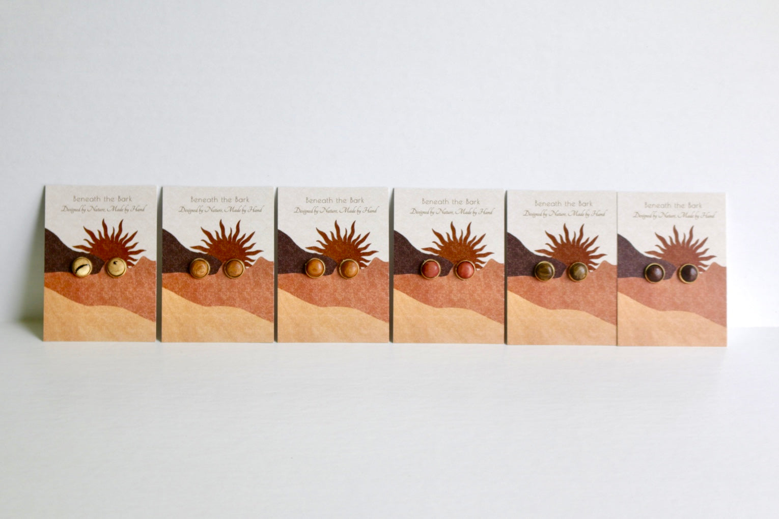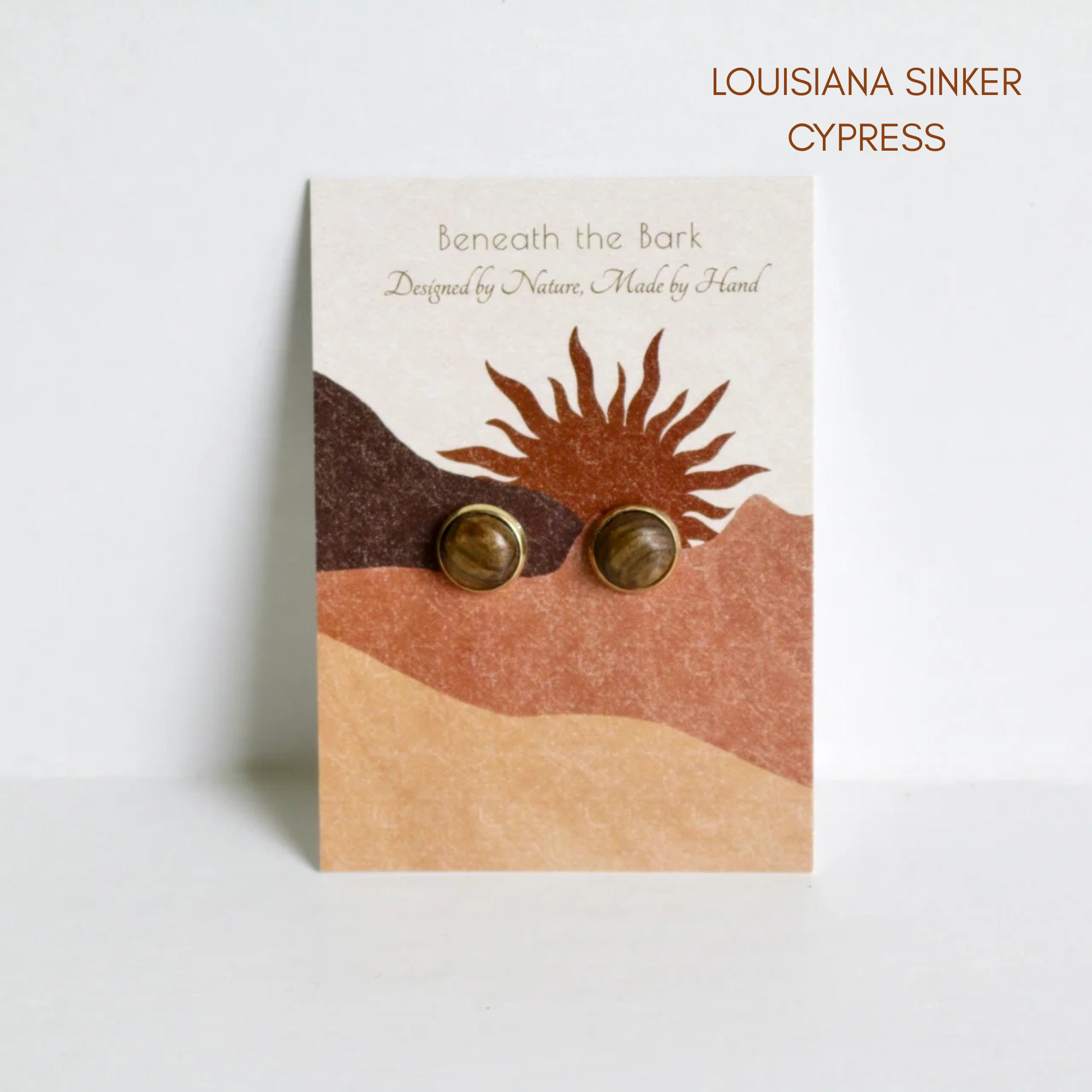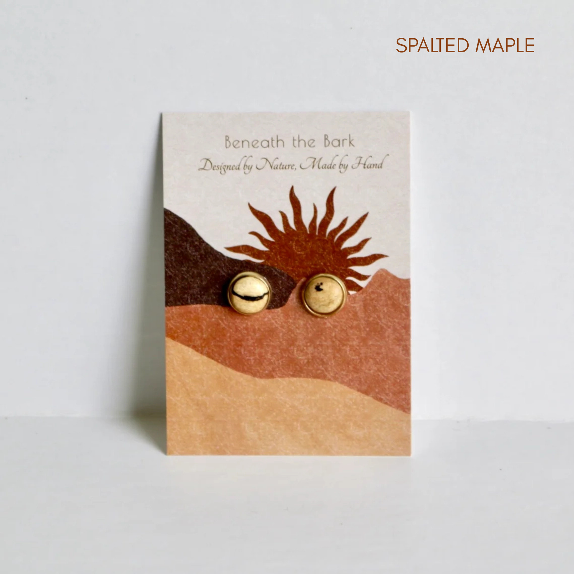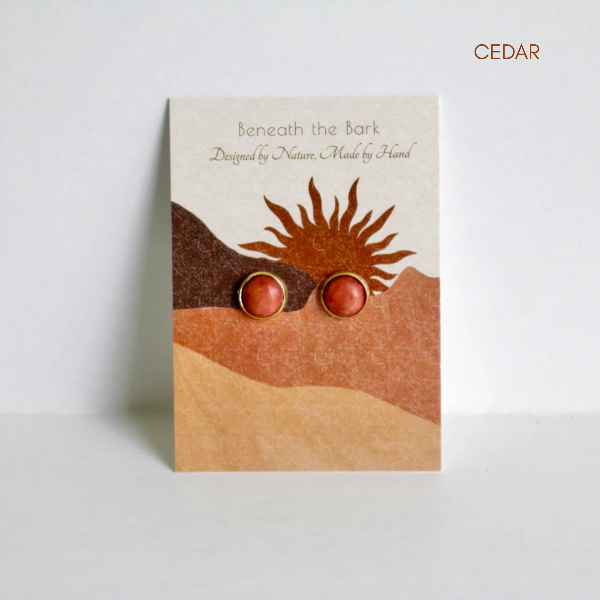 Our circle studs are handmade from salvaged wood and measure about 10mm. These earrings are made with high quality hypoallergenic 18K gold plated stainless steel ear posts.